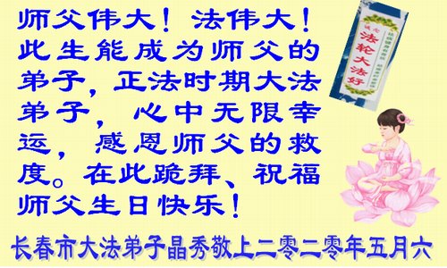长春市大法弟子 吉林省长春市一大法弟子恭祝师父生日快乐!