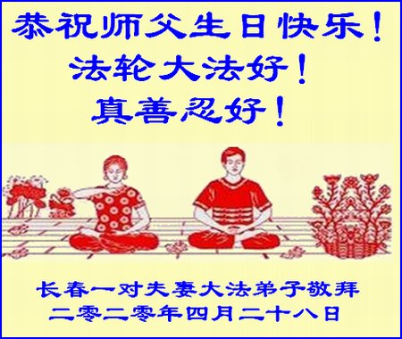 法轮大法好!真善忍好! 长春一对夫妻大法弟子敬拜 二零二零年四月二十八日 吉林省长春一大法弟子恭贺世界法轮大法日暨师尊华诞!