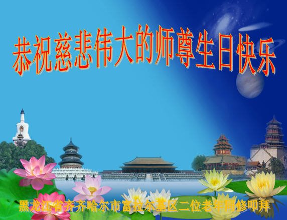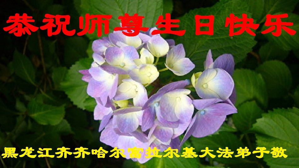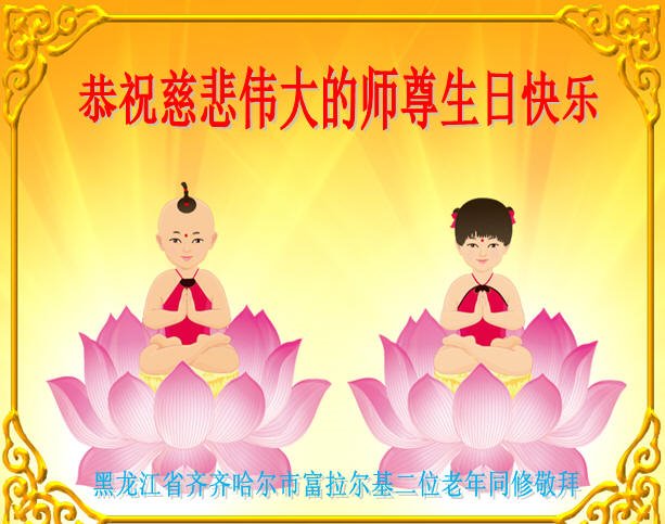 黑龙江省齐齐哈尔市富拉尔基二位大法弟子恭祝师父生日快乐!