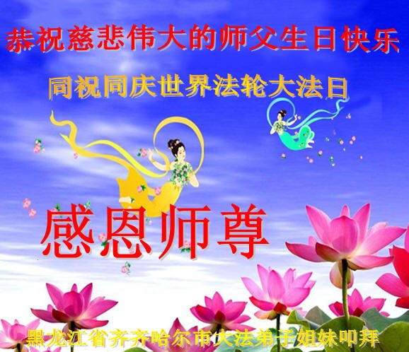 黑龙江省齐齐哈尔市姐妹大法弟子恭祝师父生日快乐!