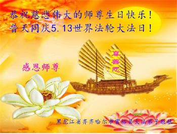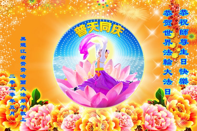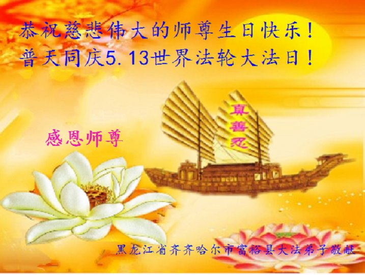 恭贺世界法轮大法日! 黑龙江省齐齐哈尔市富拉尔基大法弟子恭祝师尊生日快乐!