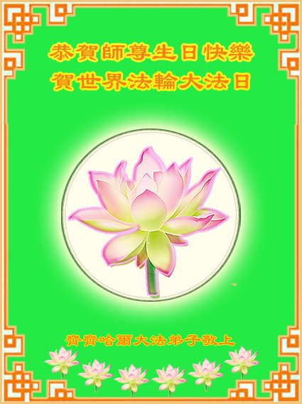 恭贺世界法轮大法日! 师父您辛苦了!弟子感恩师父给予的一切,感恩师尊的慈悲苦度。弟子要紧随师父,修炼如初,精進不怠,做好三件事,找回真正的自己,跟师父回家! 黑龙江省齐齐哈尔市大法弟子恭祝慈悲伟大的师尊生日快乐!