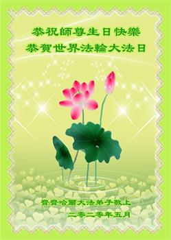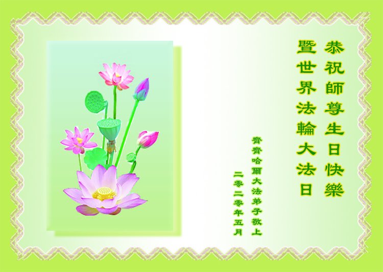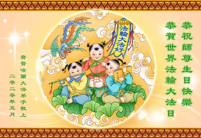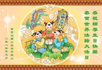 【明慧网二零二零年五月十三日】 黑龙江省齐齐哈尔市富裕县大法弟子全家恭祝师父生日快乐!