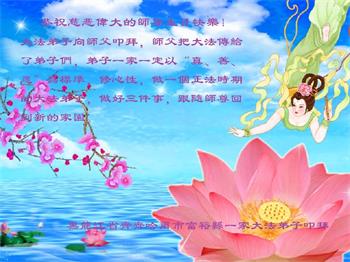 普天同庆世界法轮大法日! 恭祝慈悲伟大的师尊生日快乐!感恩师父的慈悲苦度! 合十叩拜 黑龙江省齐齐哈尔市富裕县一大法弟子恭祝师尊生日快乐!