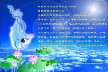 普天同庆世界法轮大法日! 黑龙江省齐齐哈尔市大法弟子恭祝慈悲伟大的师尊生日快乐!