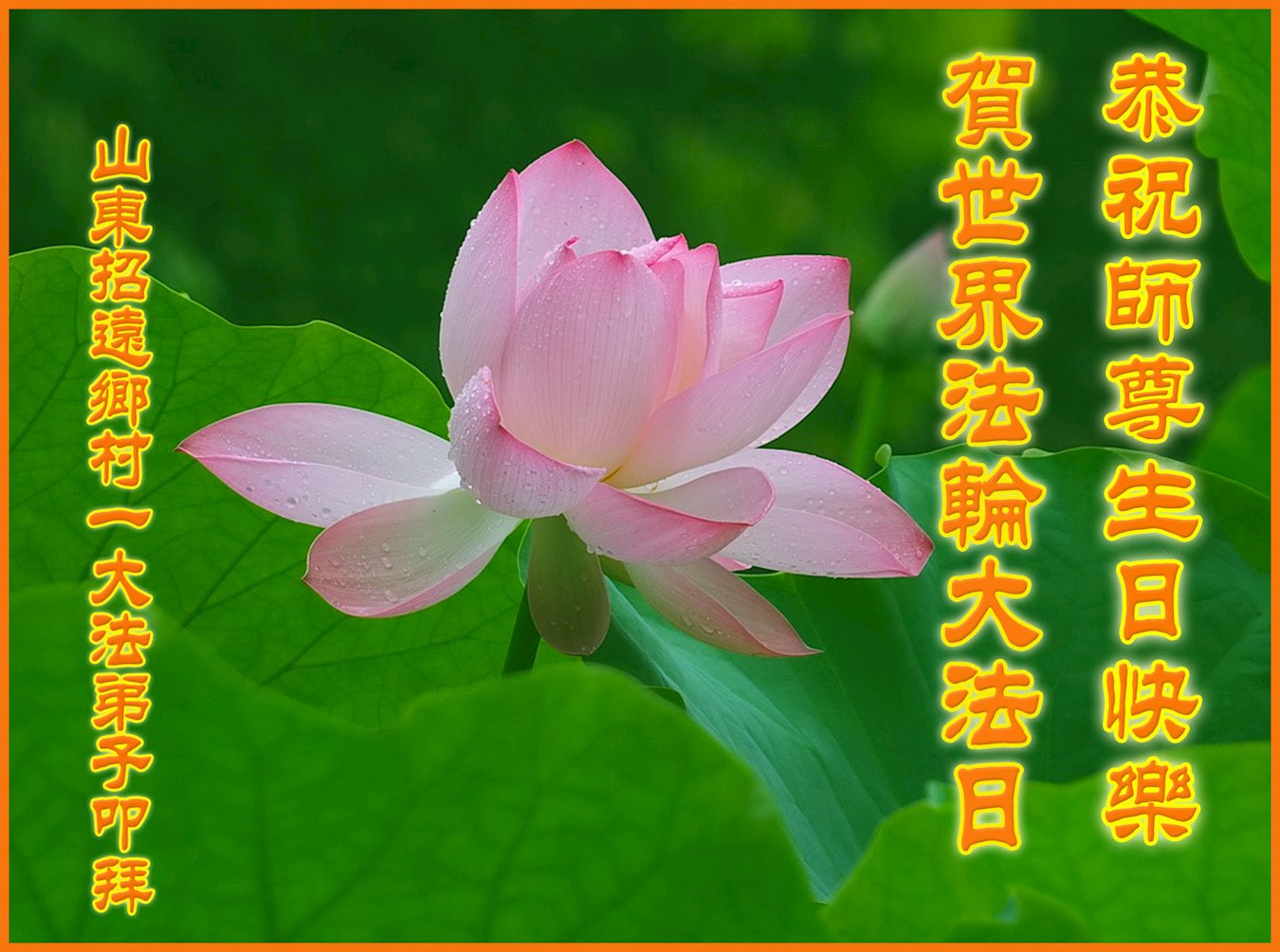 在法轮大法日到来之际,弟子呈上一份最真诚的感谢,感谢师尊在不精進的弟子得法这二十多年的慈悲保护,安排同修拽着不精進的弟子往前走,真是无法用语言表达对师尊的感恩之情,弟子只有做好三件事,让师尊欣慰,跟随师尊圆满回家。 黑龙江省齐齐哈尔市富裕县农村一学法小组 山东蒙阴一大法弟子恭祝师父生日快乐!恭贺世界法轮大法日!