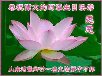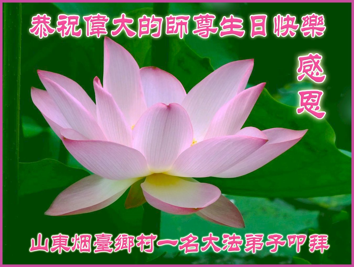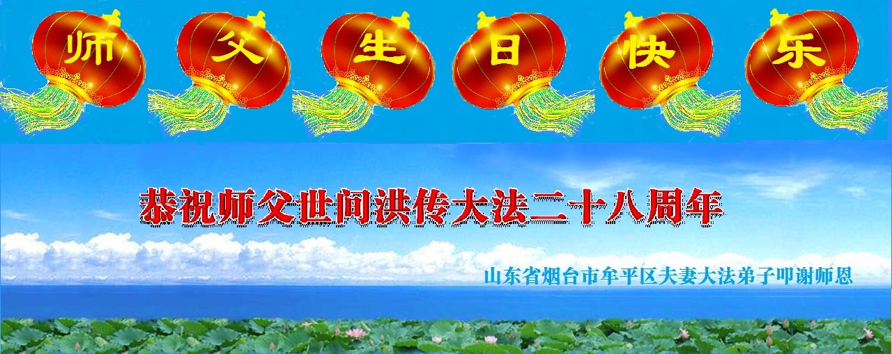 尊敬的师父您好!普天同庆5.13世界法轮大法日!五月也是百花盛开之时,弟子祝慈悲伟大的师父生日快乐!师父为弟子承受的太多、太多,付出太大了!弟子千言万语也难以表达对师父的感恩,弟子在此叩拜恩师! 山东省烟台市牟平区农村夫妻大法弟子恭祝师尊生日快乐!