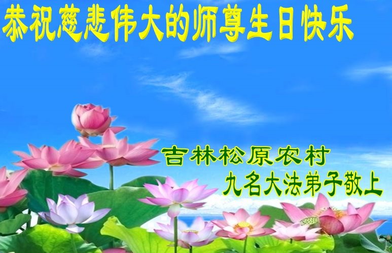 师尊您好!师尊辛苦了!我们今后一定要整体配合好,学好法,遇事向内找,共同精進,做好三件事,正念正行,做事为他人,请师尊放心! 吉林辽源乡村一大法弟子恭贺世界法轮大法日!恭祝慈悲伟大的师尊生日快乐!