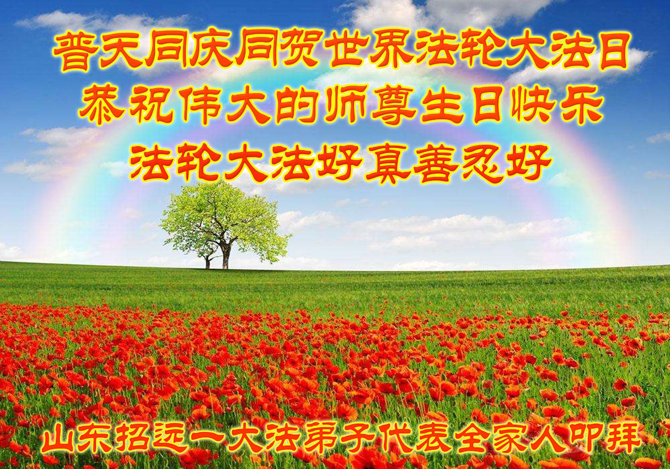 师尊传给我们宇宙大法,让我们成为这个宇宙中最幸运的生命。修炼大法不仅使我们身体健康,更重要的是让我们越来越踏实,越来越安宁,越来越真诚,越来越平和,越来越宽容,越来越懂得事事为他人着想。不修炼的人不知道,都以为修炼人苦,其实我们发自内心的想说一句:能修炼真好,修炼中苦也是甜的。我们还想说:修炼是科学,是比现代人类科学更高的科学,所以很多现在科学解决不了的问题,修炼才能解决。唯愿更多生命都能象我们一样幸运,都能得到大法的福益。 山东省烟台市招远市一大法弟子代表全家人恭祝法轮大法日暨伟大的师尊华诞!