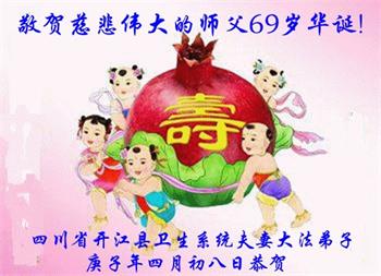 四川省达州市开江县卫生系统夫妻大法弟子敬贺慈悲伟大的师父华诞!