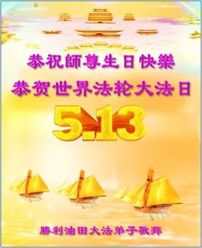 山东省东营市胜利油田大法弟子恭祝伟大的师尊生日快乐!恭贺5.13世界法轮大法日!