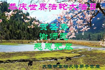 世界法轮大法日到了,暨师尊华诞亦到,谨向师尊致衷心的祝贺!在这喜庆的日子里,愿师尊多一份欣慰,少一份操劳! 表心愿 燕舞莺歌春意闹 五一三到春亦到 敬祝恩师生日好 师恩铭心永记牢 河北石家庄地区农村一学法小组敬贺 河北省石家庄农村一家庭大法弟子恭祝师父生日快乐!