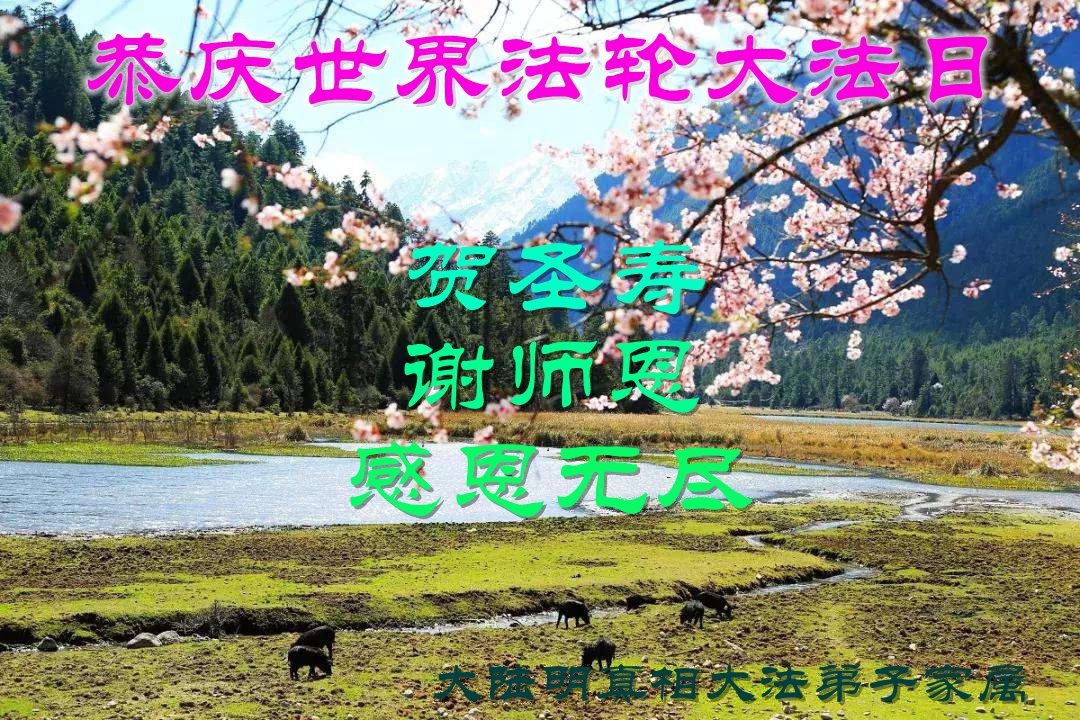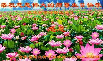 感恩师尊慈悲救度!千言万语,也无法表达对师尊的感激,二十多年来,师尊时刻在弟子身边保护弟子。在师尊的保护下一次次从关难中走过来,弟子一定坚修大法,走好以后的路。随师返回天国家园。再次恭祝师尊生日快乐! 大陆东北农村明真相大法弟子家属恭祝师尊生日快乐!