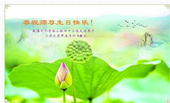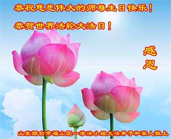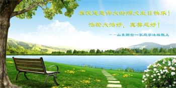 山东烟台一家庭学法小组大法弟子恭祝慈悲伟大的师父生日快乐!