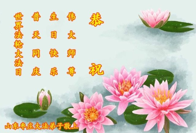 山东枣庄大法弟子恭祝慈悲伟大师尊生日快乐!庆祝世界法轮大法日!