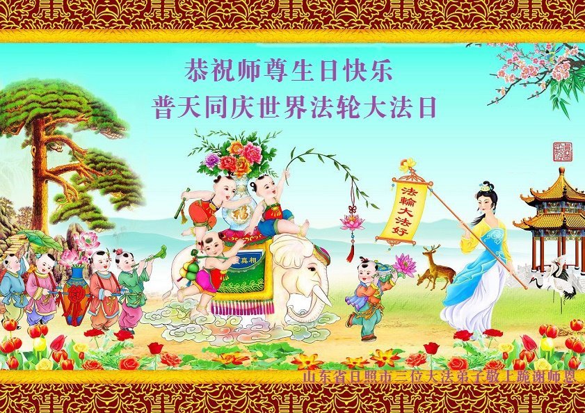 山东一家三口大法弟子恭祝师尊生日快乐!恭贺法轮大法日!