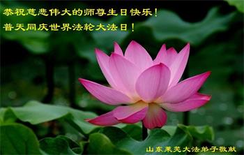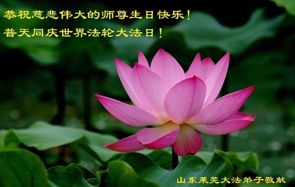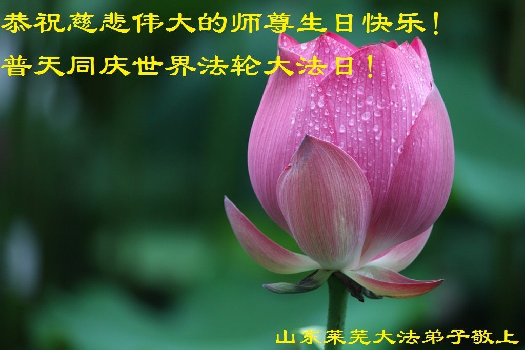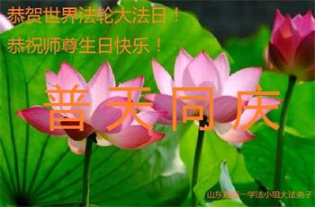 庆祝第21届世界法轮大法日暨法轮大法洪传28周年!恭祝慈悲伟大的师父六十九岁华诞! 不管世间形势如何变换,我们一定会紧跟师父正法進程,精進实修,做好三件事,踏踏实实多救人! 山东省聊城市东昌府区开发区等全体大法弟子敬祝 山东烟台莱山区一学法小组大法弟子恭祝师尊生日快乐暨世界法轮大法日!