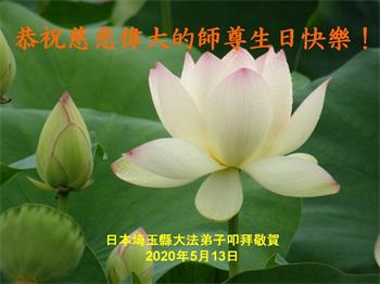 【明慧网二零二零年五月十三日】 日本埼玉县大宫炼功点全体大法弟子恭祝伟大的师尊生日快乐!