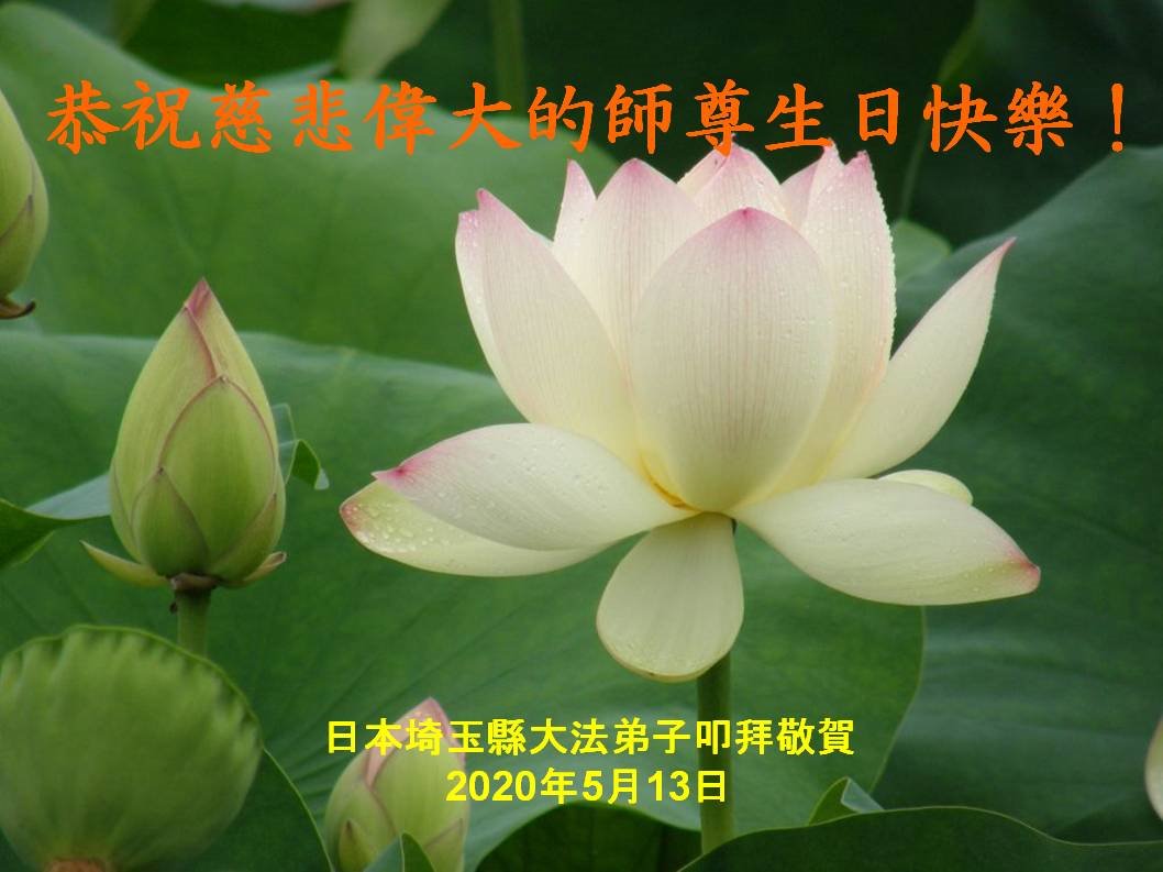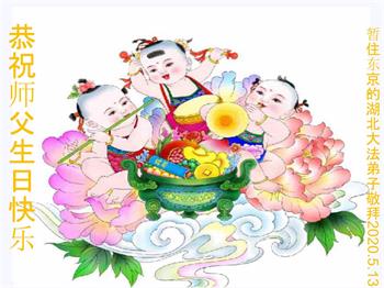 恭祝师尊六十九岁华诞!普天同庆五·一三世界法轮大法日! 在正法的最后时刻弟子一定全力做好三件事,圆满随师还。 再次恭祝伟大的师尊生日快乐! 日本埼玉县大法弟子恭祝慈悲伟大的师尊生日快乐!