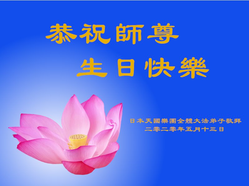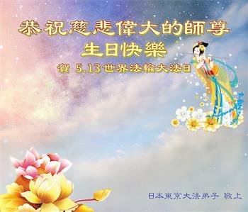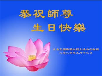 恭祝师尊生日快乐!同庆世界法轮大法日! 在日本法轮大法弟子家属敬上。 日本浅草青年大法弟子恭祝师尊生日快乐!