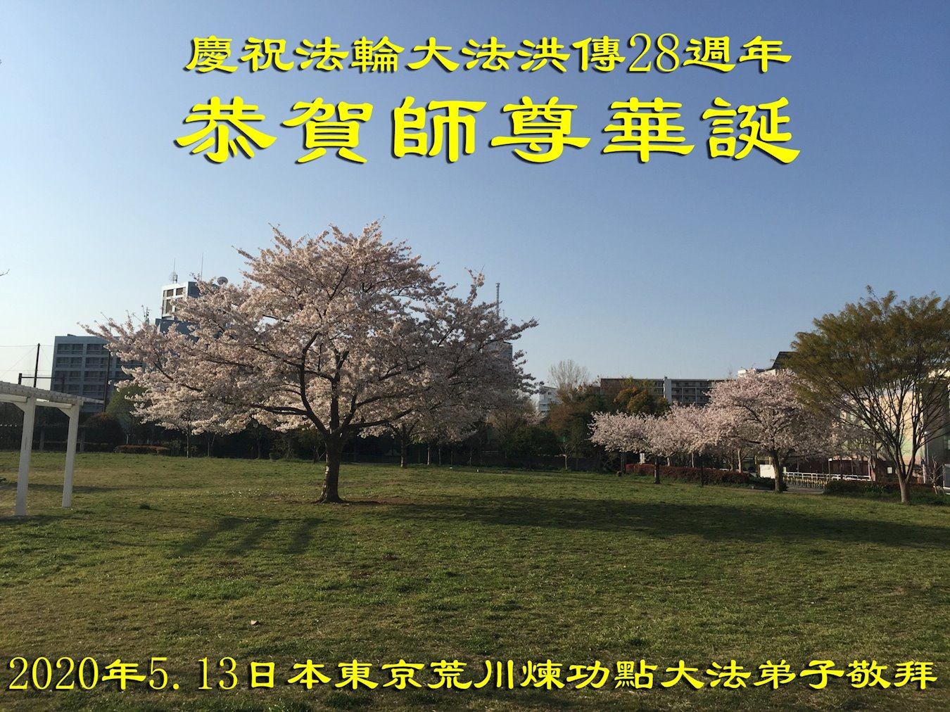 日本东京荒川炼功点的大法弟子恭祝慈悲伟大的师尊生日快乐!庆祝法轮大法洪传二十八周年!