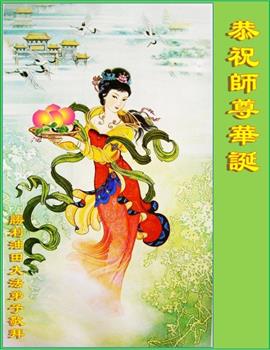 度船开起师导航 万里征程救人忙 师父慈悲传大法 红魔惧怕把路挡 天安门自焚造假相 新闻联播把大法谤 造谣阻挡世人明真相 法轮旋转天地亮 万物更新人欢畅 法轮大法好 真善忍好 传遍五洲四大洋 五月十三大法日 普天同庆鼓乐齐鸣 春风荡漾喜气洋洋 大法弟子衷心祝愿 洪大慈悲的师父生日快乐! 修炼路上遵师敬守根本 信师信法正念永存 紧跟师尊圆满回天堂 黑龙江省佳木斯市大法弟子四姐妹敬上 山东省莱钢集团全体大法弟子恭贺师尊华诞暨五・一三世界法轮大法日!