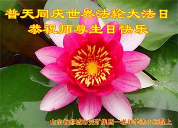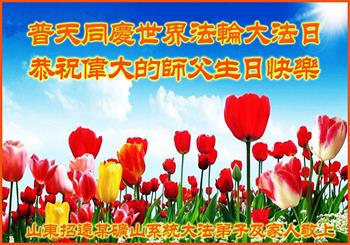 山东省烟台市招远市某矿山系统大法弟子及家人恭祝世界法轮大法日暨师尊华诞!