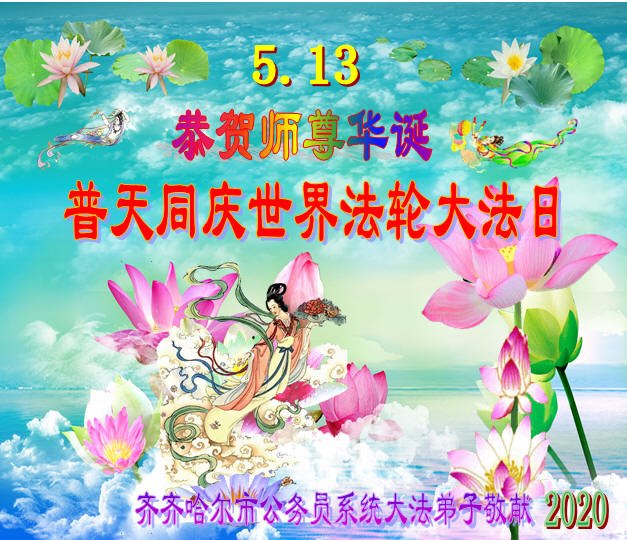 黑龙江省齐齐哈尔市公务员系统大法弟子恭祝慈悲伟大师尊生日快乐!普天同庆同贺“五一三”世界法轮大法日!