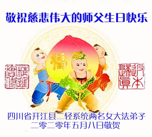 恭贺世界法轮大法日! 师父您辛苦了! 航空工业成都飞机工业公司全体大法弟子敬上 二零二零年五月八日 山东济南医疗卫生系统大法弟子恭祝师尊生日快乐!恭祝5.13世界法轮大法日!