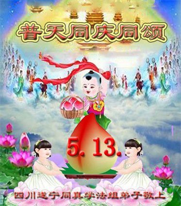 普天同庆同贺同颂 普天同庆五一三 师尊传法到人间 为了众生能得救 多少苦难师承担 轮回辗转等大法 历尽艰辛结圣缘 师尊慈悲救苍生 弟子走正修炼路 助师正法了洪愿 功成圆满随师还 四川省巴中市恩阳区花丛镇大法弟子恭祝世界法轮大法日!庆祝法轮大法洪传世界二十八周年!