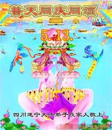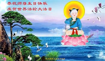 法轮大法救苍生 正天正地正人间 旧势邪灵即灭尽 遥望新宇美无边 精進做好三件事 兑现誓约随师还 四川遂宁大法弟子恭祝师尊生日快乐!