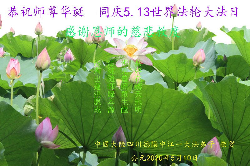 【明慧网二零二零年五月十四日】 四川德阳中江一大法弟子恭祝师尊华诞!