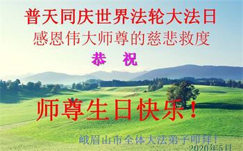 四川乐山一学法点大法弟子恭贺师尊华诞!庆祝第二十届世界法轮大法日!庆祝法轮大法洪传世界二十八周年!