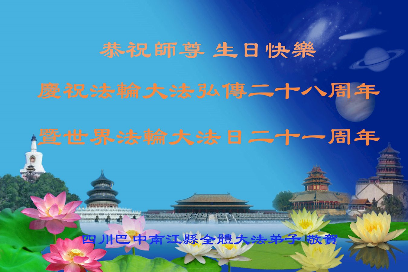 四川巴中南江县大法弟子恭祝师父生日快乐暨法轮大法日!