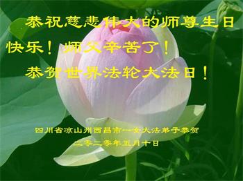 四川省凉山州西昌市一女大法弟子恭祝师尊生日快乐!恭贺世界法轮大法日!