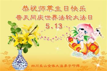 四川省乐山市大法弟子恭祝师尊生日快乐!庆祝世界法轮大法日!