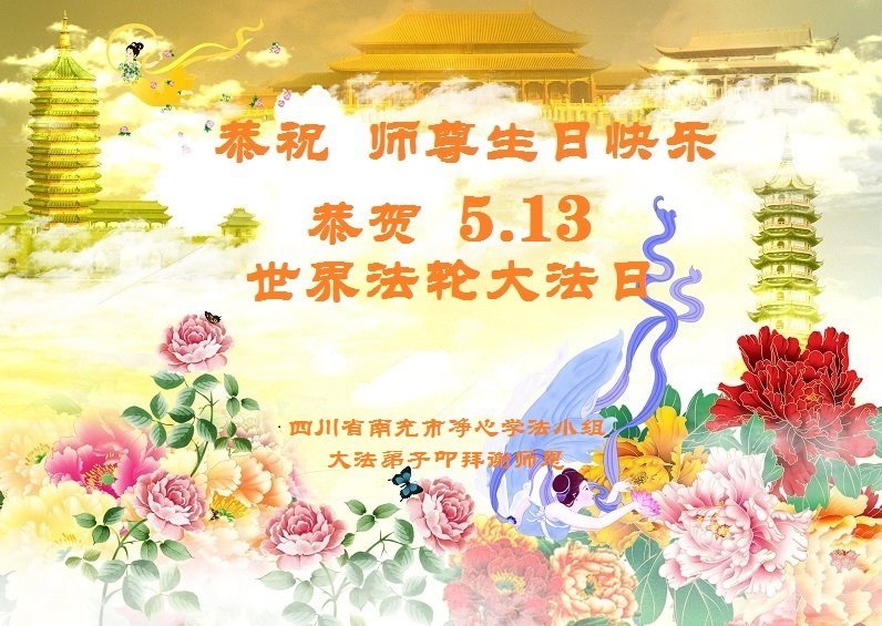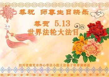 四川南充市一学法小组大法弟子恭贺世界法轮大法日!