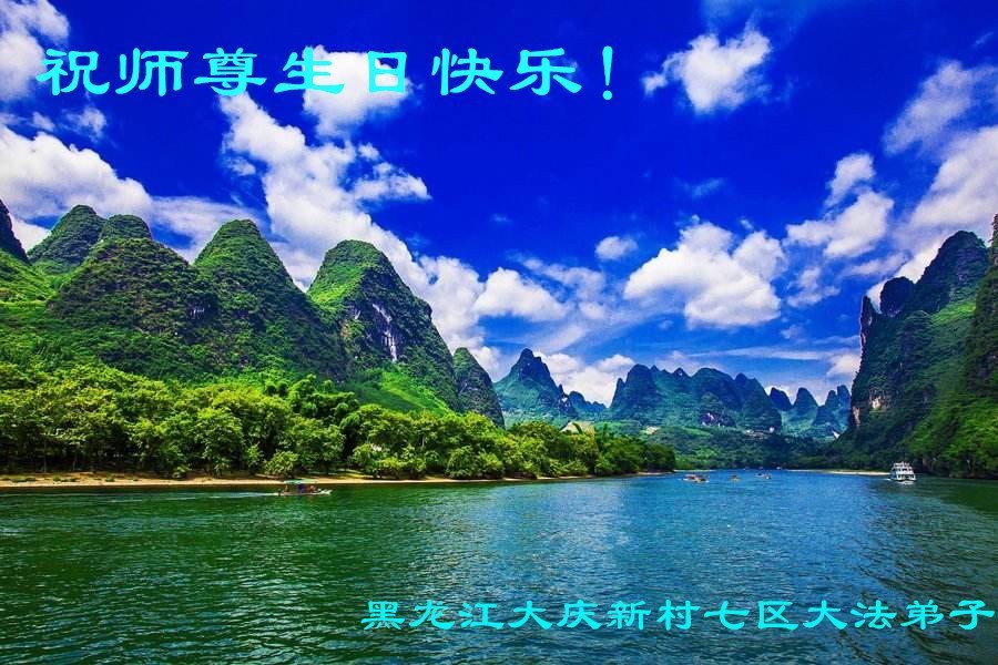 黑龙江省大庆市一大法弟子之子恭祝师尊生日快乐!