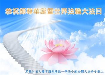 黑龙江大庆一大法弟子恭祝师尊生日快乐!恭贺世界法轮大法日!
