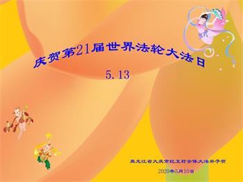 黑龙江省大庆市红卫村全体大法弟子庆贺第21届世界法轮大法日!