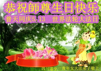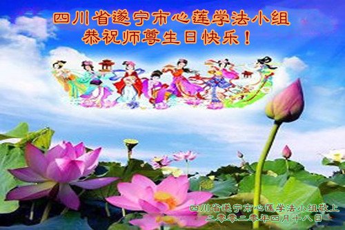 庆祝5.13世界法轮大法日! 四川省遂宁市心莲学法小组大法弟子恭祝师尊生日快乐!