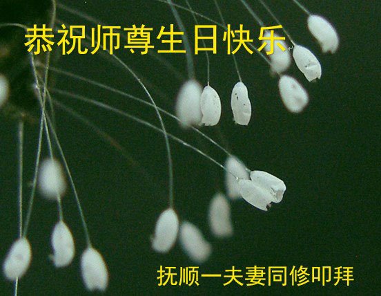 在剩下来不多的时间里,听师尊的话,多学法学好法,精進实修,多救人……千言万语也无法表达对师尊的感恩。谢谢师尊慈悲救度! 合十 辽宁省抚顺市清原县大法弟子恭祝师尊生日快乐!