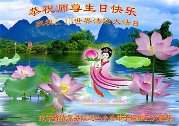 辽宁省抚顺市清原县红透山大法弟子姐弟三人恭祝师尊生日快乐!