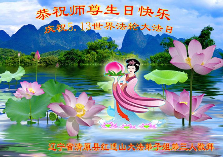 在普天同庆的日子大法弟子感谢师恩!用尽人间的千言万语,也无法表达对师感恩,师尊慈悲苦度,师父洪恩浩荡,让大法弟子们能在俗世中找回自己、返本归真,感谢师父救度之恩,在这特别日子,祝师父生日快乐!弟子只有学好法,修好自己去执着,向内找自己,讲清真相多救人,我们努力做好三件事,让师尊多一份欣慰,少一份操劳。完成我们誓约,跟随师父回家园。 辽宁三名大法弟子恭祝师尊生日快乐!恭祝5.13世界法轮大法日!恭贺第二十一届世界法轮大法日!