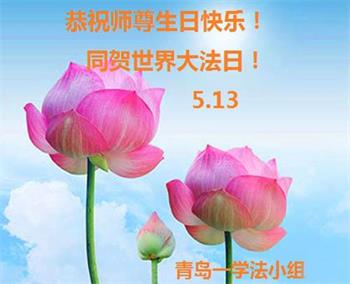 山东省青岛市胶州区一学法小组大法弟子恭贺法轮大法日!