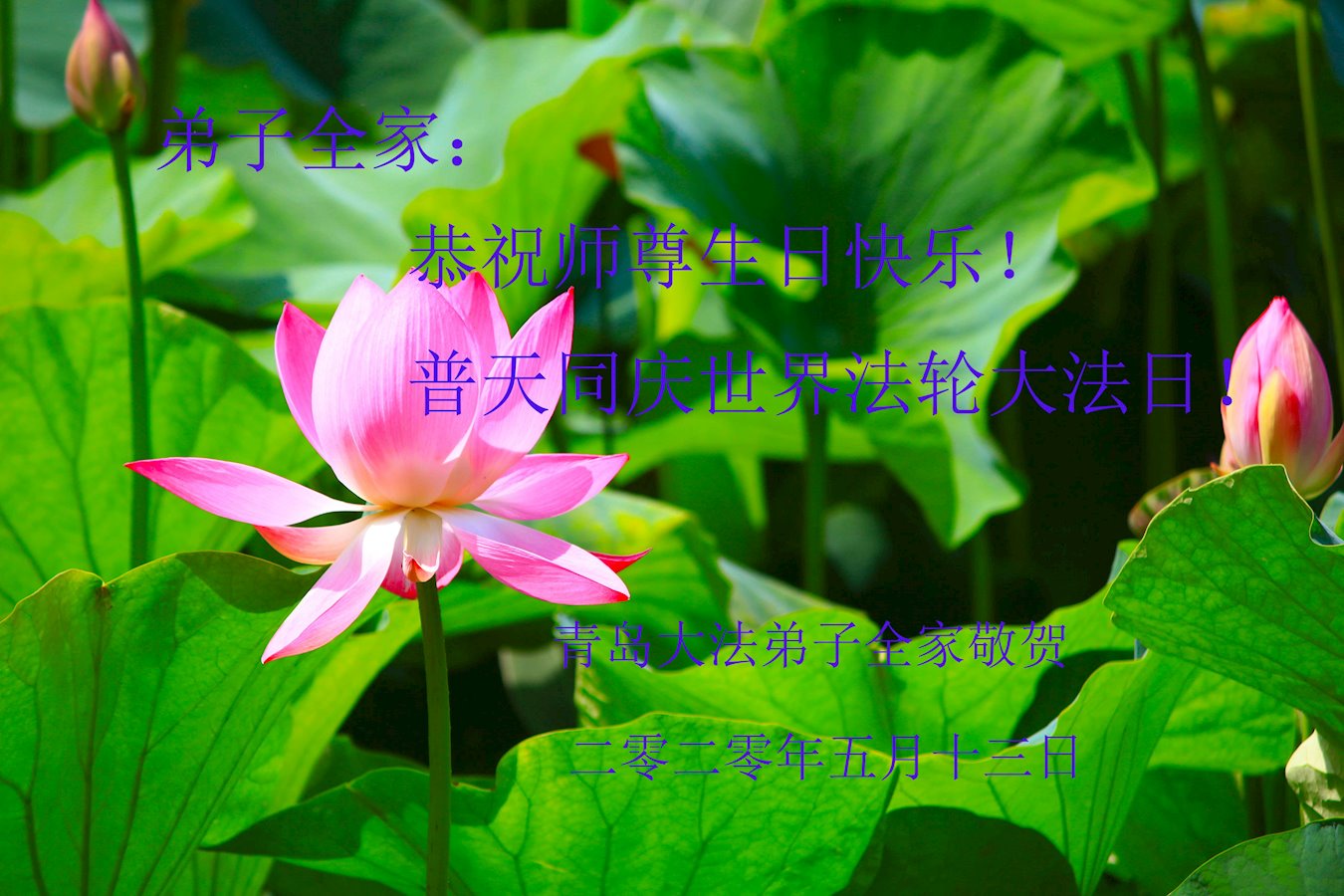 山东省青岛市一大法弟子全家恭祝师尊生日快乐!