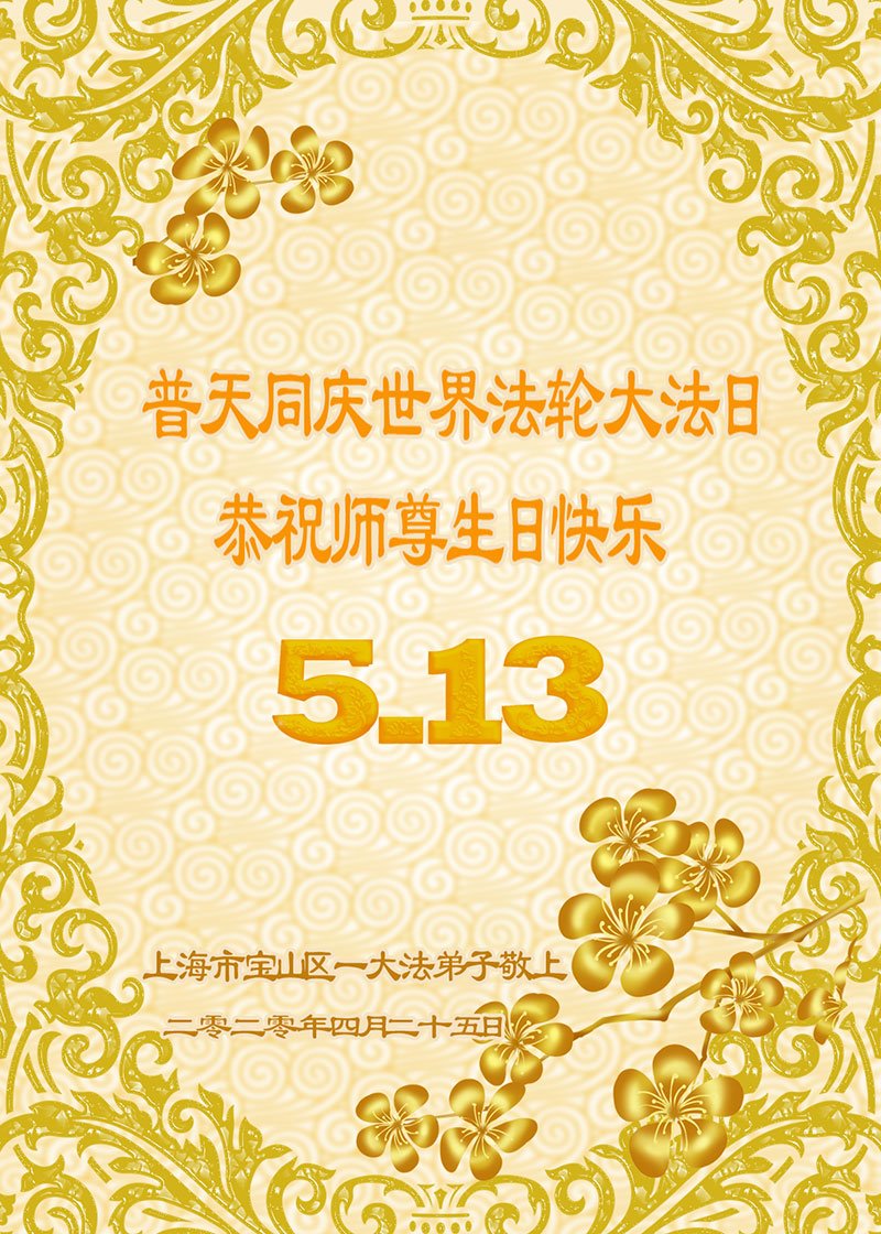 上海市宝山区一个大法弟子恭祝师尊生日快乐!普天同庆世界法轮大法日!
