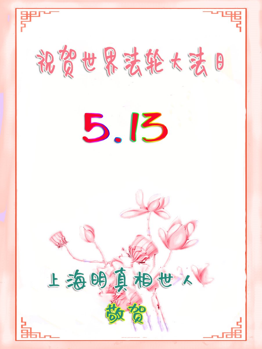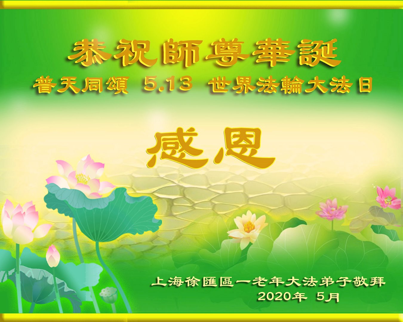 普天同庆5·13世界法轮大法日! 上海浦东新区一老年大法弟子恭祝慈悲伟大师尊生日快乐!