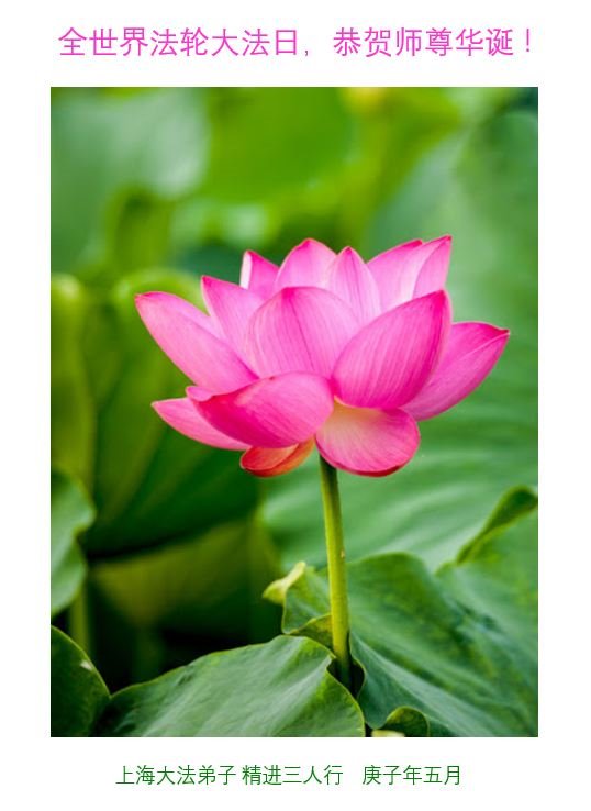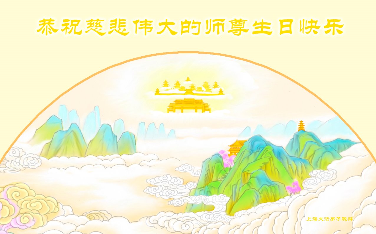在二十多年的修炼中,在师父慈悲保护下,走到了今天,师父为我承受了太多太多,今后只有多学法,学好法,多救人,才能报答师父的救度之恩。向内找、修好自己,跟师父回家! 上海市一青年大法弟子恭祝慈悲伟大的师尊生日快乐!