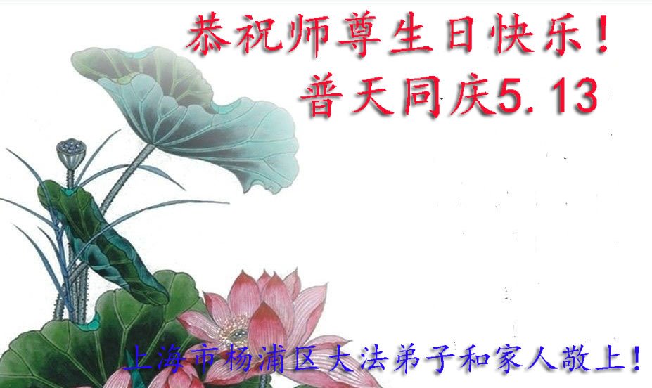 师父啊,我一定要向内找自己,像个真正的修炼人,不是嘴上说,心里一定要做到。谢谢师父的慈悲保护!感恩师尊救度之恩! 上海市杨浦区大法弟子和家人恭祝师尊生日快乐!普天同庆世界法轮大法日!